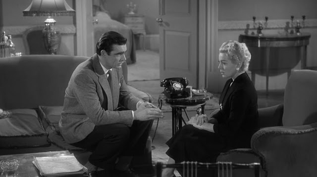 The film opens with the voice of Sean Connery - lacking the richness and accent we are accustomed to - describing the defusing a bomb that landed unexploded in WWII war-torn London. He is BBC reporter Mark Trevor. US Foreign Correspondent Sara Scott (Lana Turner) shows up. They seem to be professional rivals, until they hop in a car to escape the pouring rain for a few minutes and we discover they are lovers.